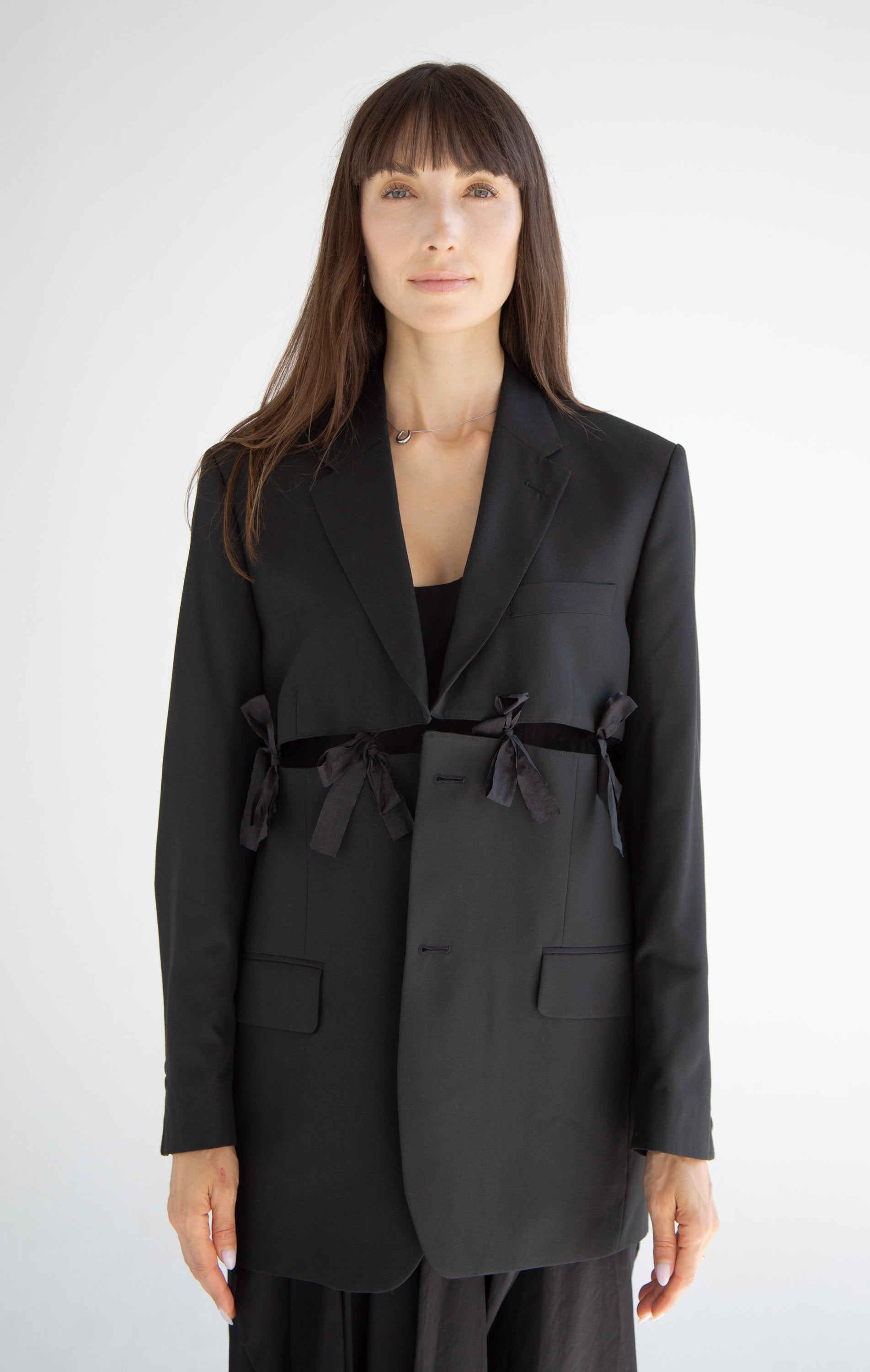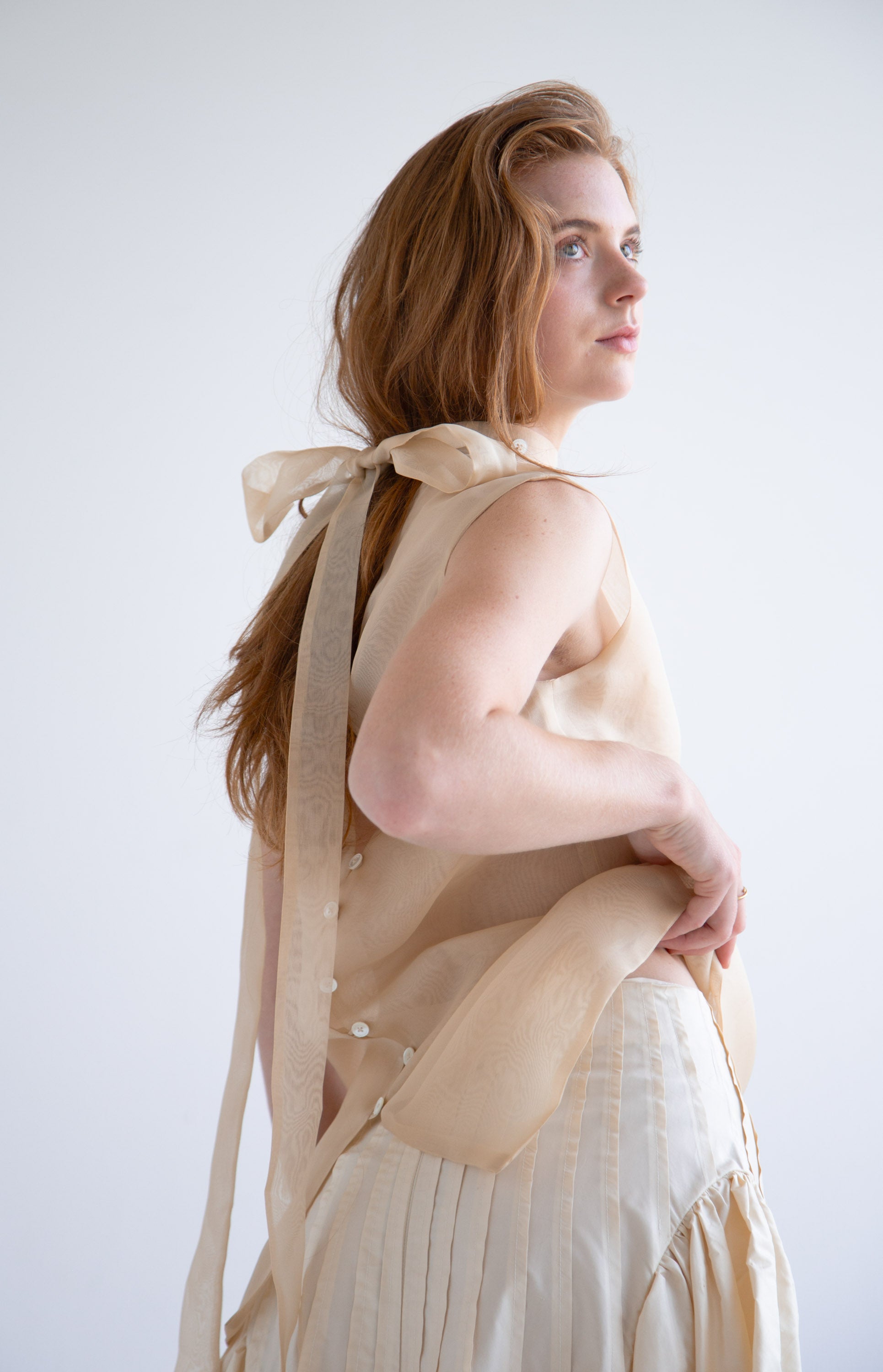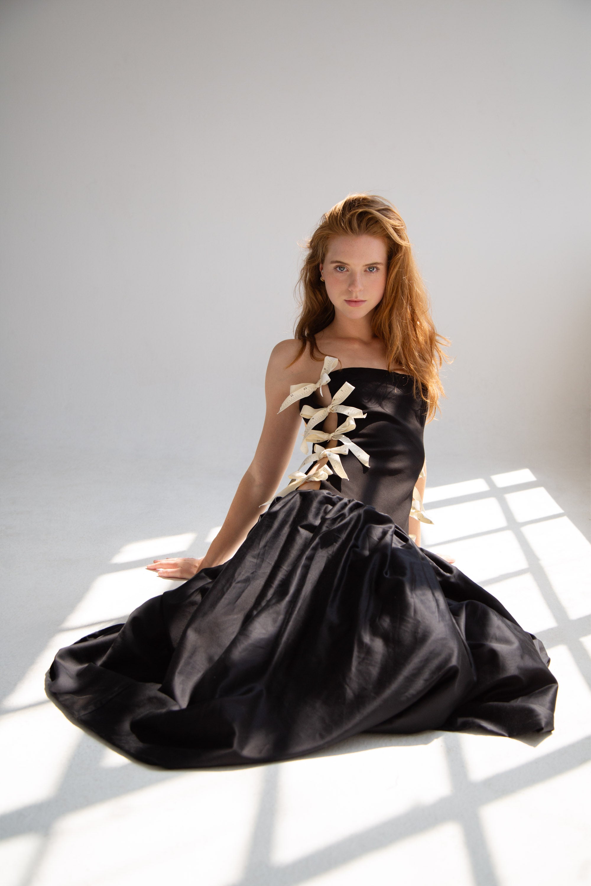 At Y-Y, we focus on reducing production waste by upcycling materials to create unique garments in timeless silhouettes. We actively source pre-existing textiles from overproduced garments, deadstock fabric runs, and vintage designer items.